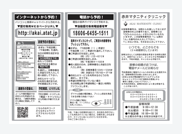 - お産や緊急手術等により待ち時間が長引く場合があります。 ご理解頂きますようお願い申し上げます。